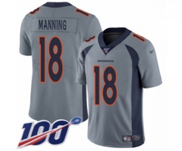 Youth Denver Broncos #18 Peyton Manning Limited Silver Inverted Legend 100th Season Football Jersey