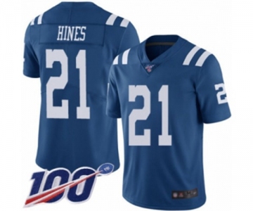 Youth Indianapolis Colts #21 Nyheim Hines Limited Royal Blue Rush Vapor Untouchable 100th Season Football Jersey