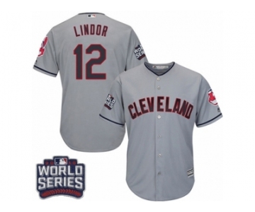 Youth Majestic Cleveland Indians #12 Francisco Lindor Authentic Grey Road 2016 World Series Bound Cool Base MLB Jersey