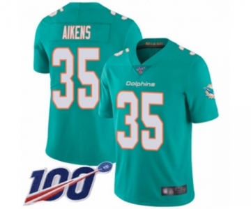 Youth Miami Dolphins #35 Walt Aikens Aqua Green Team Color Vapor Untouchable Limited Player 100th Season Football Jersey