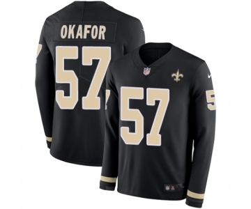 Youth Nike New Orleans Saints #57 Alex Okafor Limited Black Therma Long Sleeve NFL Jersey